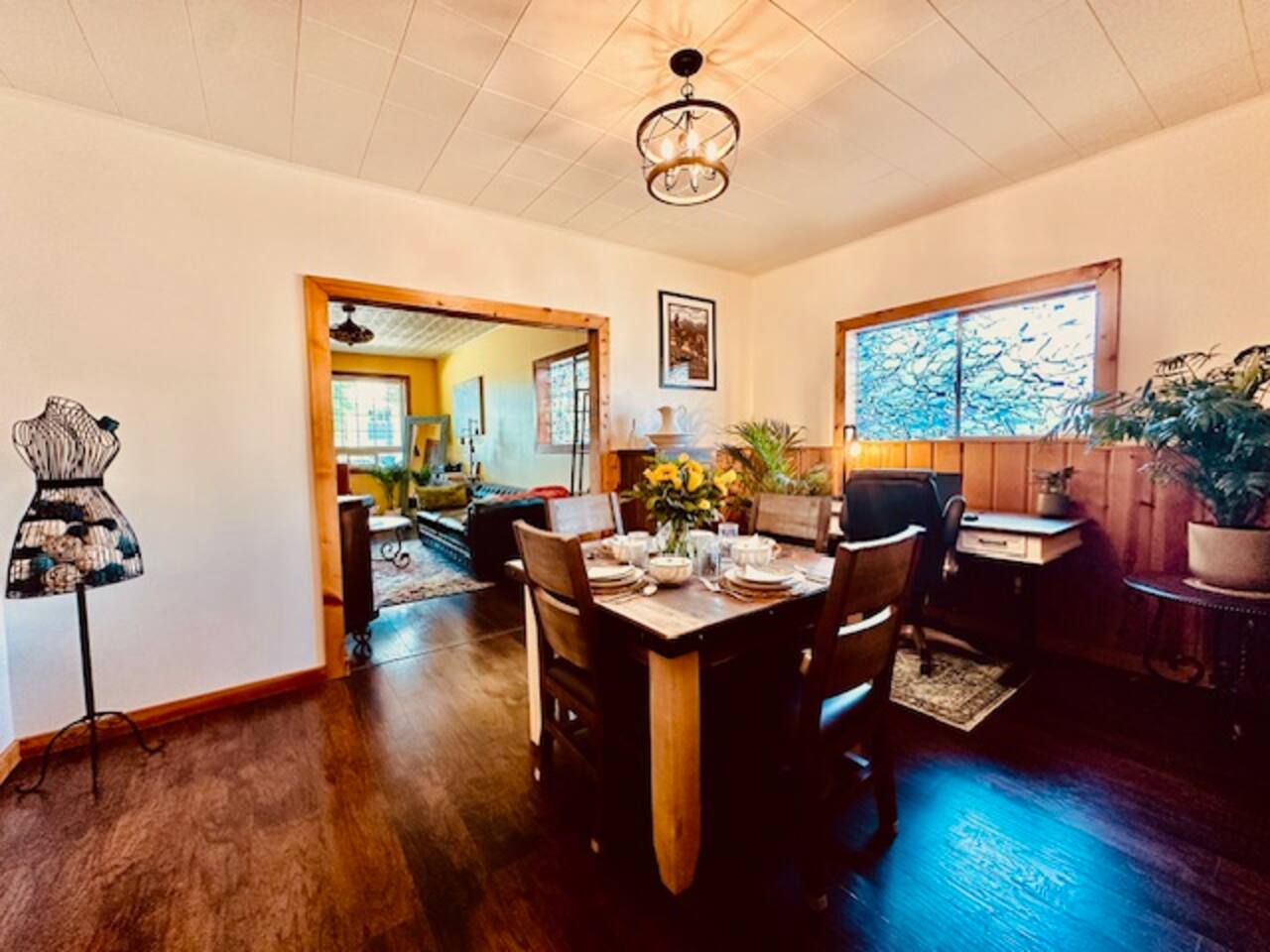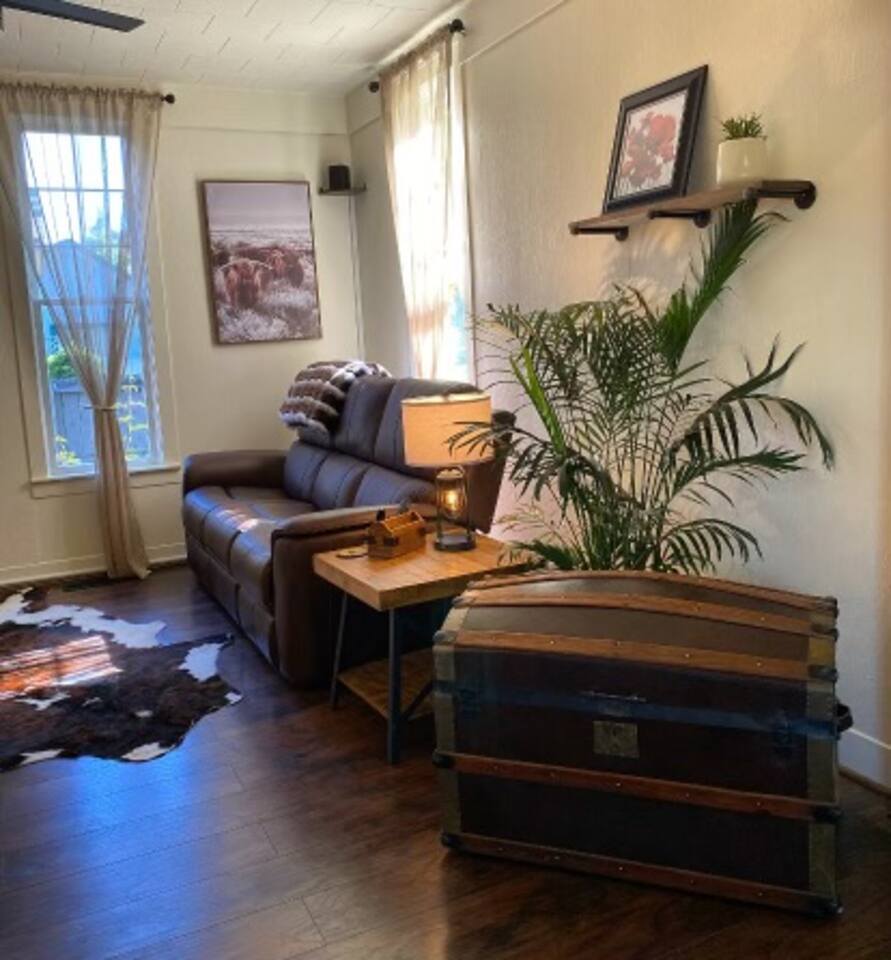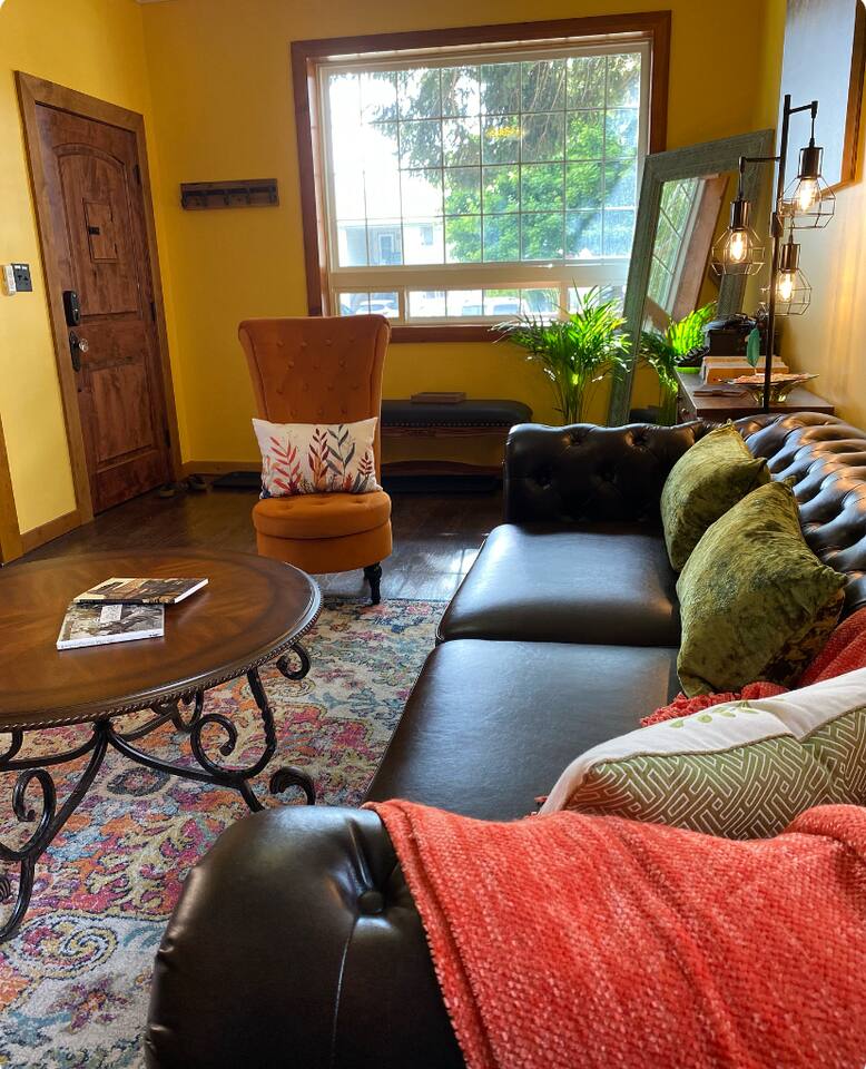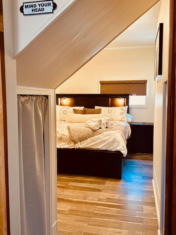 If these walls could talk, they'd probably start with, "Welcome to this circa 1900 Victorian-era home! I have amazing stories to share!" Discover loving wear, quaint aging, and PLENTY of charm both inside and out. It will be like you're living inside a well loved novel—full of character and a few plot twists. Over the years, this house has seen it all and adapted accordingly. As families grew, so did the home, resulting in a unique but spacious layout. It's as if the house went through a few renovations and thought, "Why not add a little more character?" Some of that character comes in the form of uneven floor transitions (watch your step), and depending on how tall you are, one head knocker, mind your head! While the rooms may be smaller than in modern homes, they're bursting with comfort and charm. Think of them as cozy retreats, perfect for curling up with a good book. Or you could write your own in the dedicated workspace with standup/adjustable desk. So come on in, make yourself at home, and let your imagination run wild. Book now and become a part of this home's rich history! Free on street parking. Chore free, and no cleaning fees